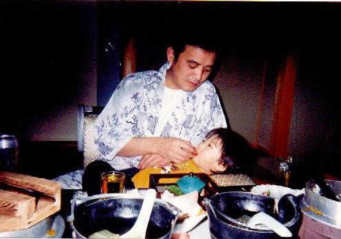 パパに抱っこしてもらって寝ながらの食事?