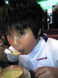 コーンスープを飲んでる幸平。 |