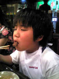 肉を食べながら美味しい顔をしてる幸平 |