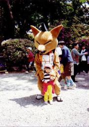 | 大垣博覧会のマスコット狐の みつなり君と記念写真 |